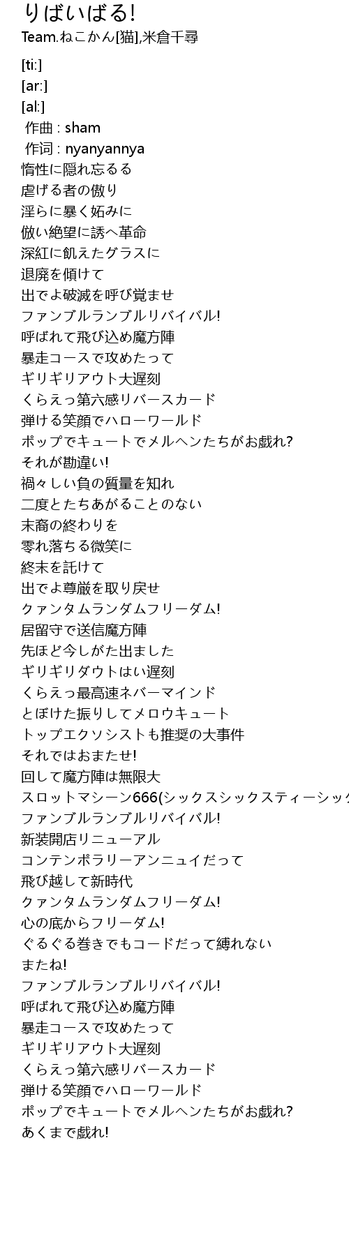 | [02:42.98] | ファンブルランブルリバイバル! |