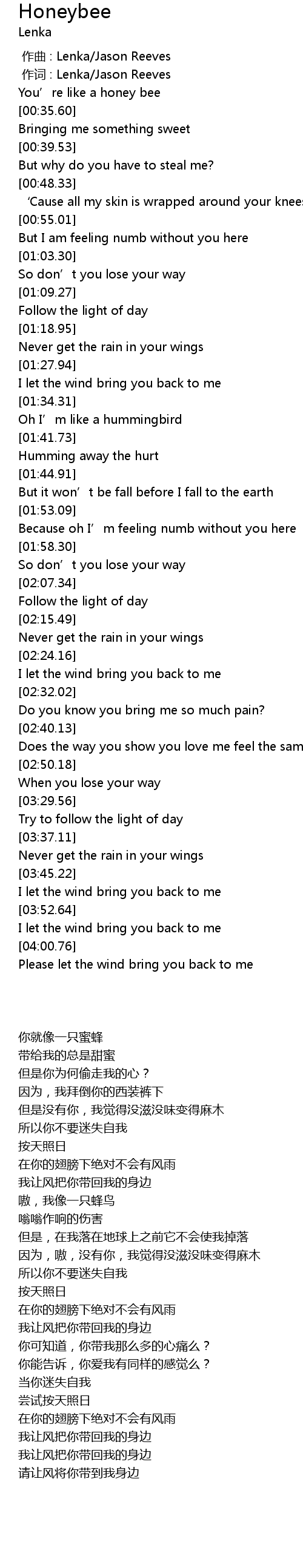 | [01:37.86] | 嗷,我像一只蜂鸟 |