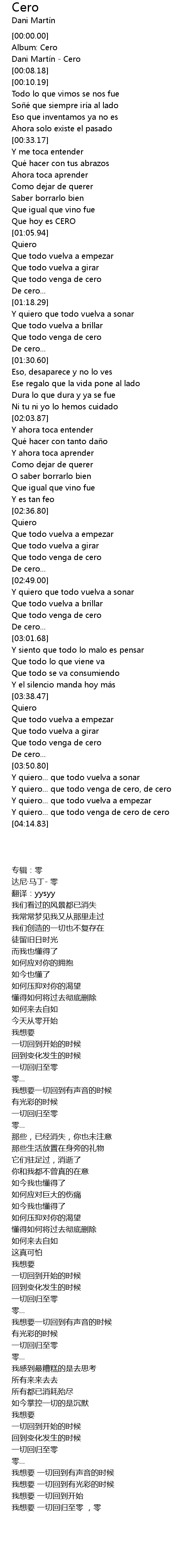 | [00:05.29] | Dani Martín - Cero |