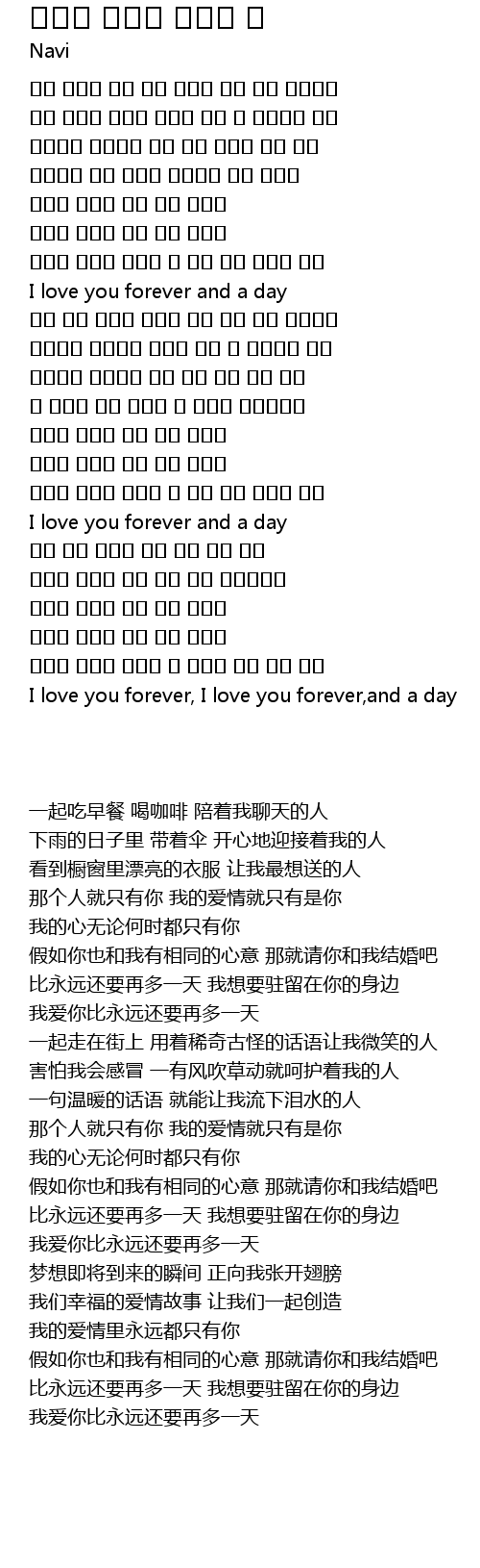 | 歌曲 | 영원히 그리고 하루만 더 |
