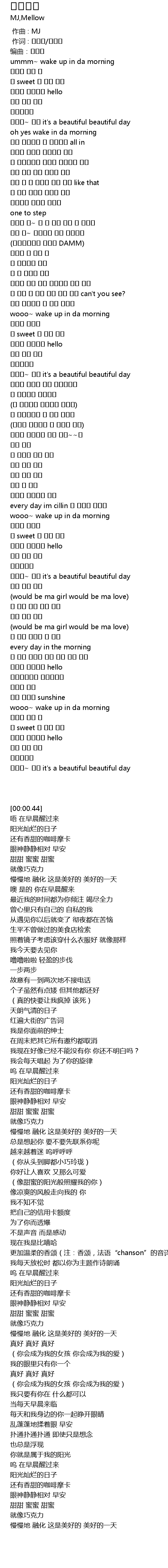 | [02:44.24] | wooo~ wake up in da morning |