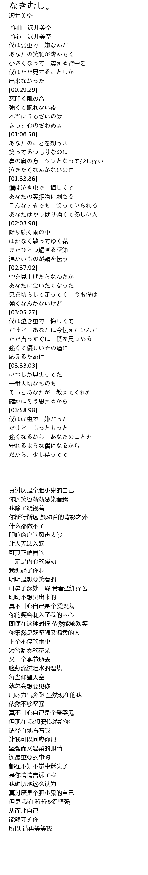 | [03:06.71] | 僕は泣き虫で 悔しくて |