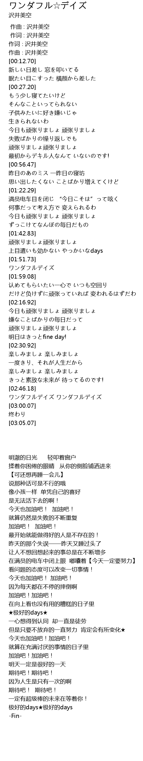 | [02:51.15] | ワンダフルデイズ ワンダフルデイズ |