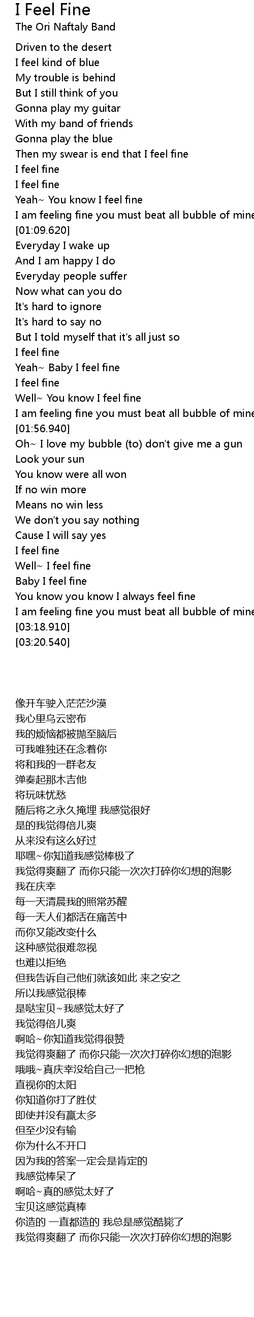 Then my swear is end that I feel fine |