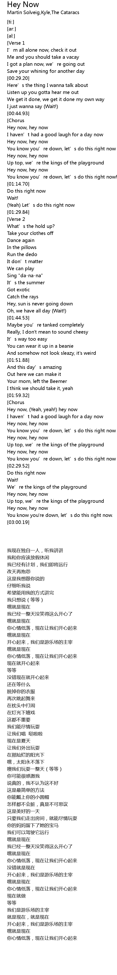 | [02:00.93] | Hey now, (Yeah, yeah!) hey now |