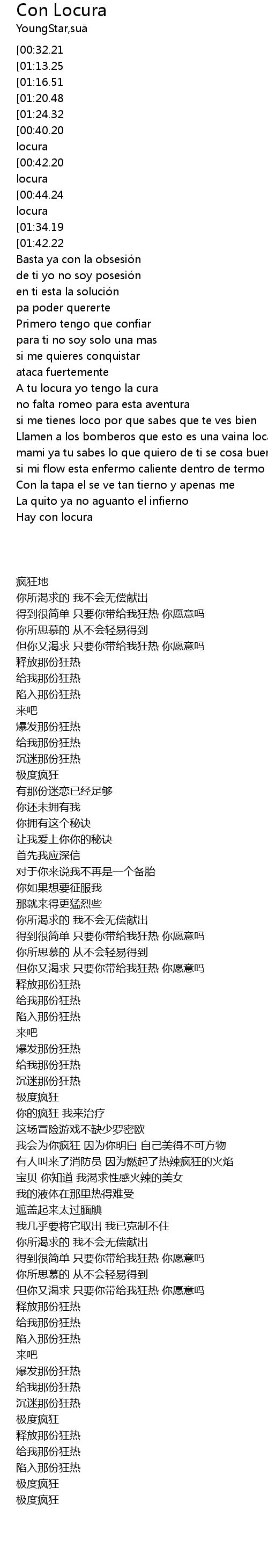 | [00:46.35][01:42.22][02:46.42][03:26.22] | hay con locura |