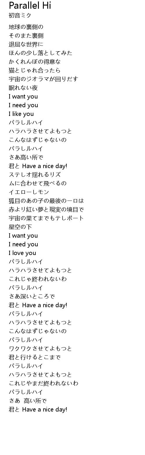 | [03:33:000] | 君と Have a nice day! |