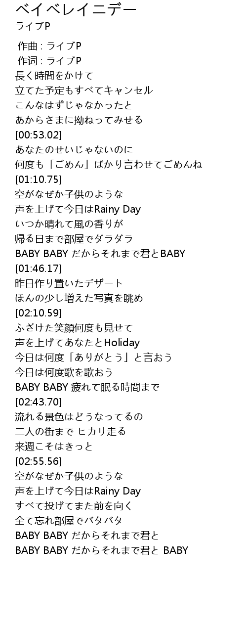| [03:02.06] | 声を上げて今日はRainy Day |