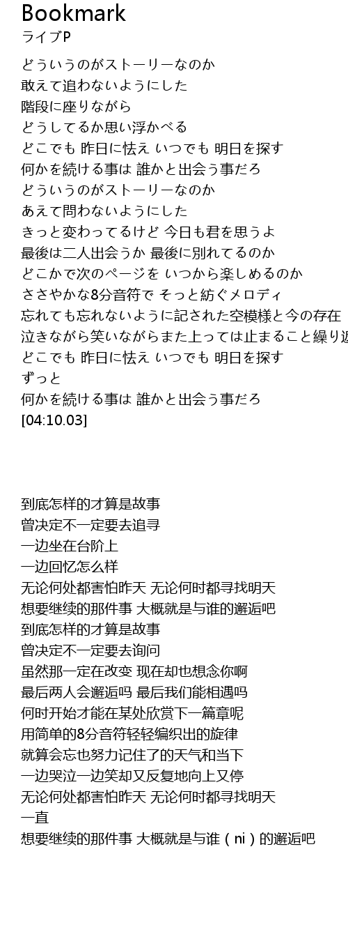 | [02:33.29] | どこかで次のページを いつから楽しめるのか |