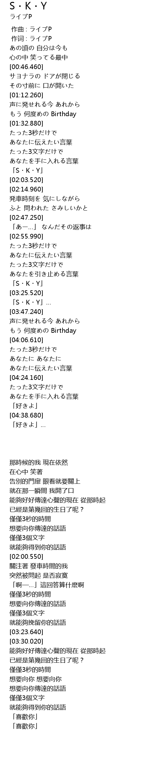 作词 : ライブP |