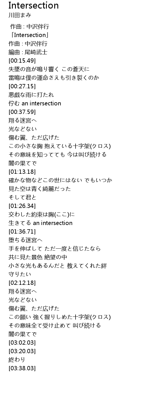| [00:00.49] | 「Intersection」 |
