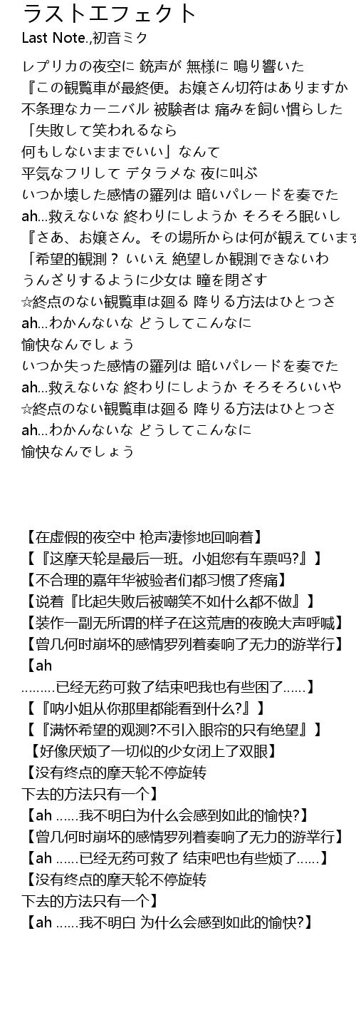 | [02:04.308] | 【没有终点的摩天轮不停旋转 下去的方法只有一个】 |