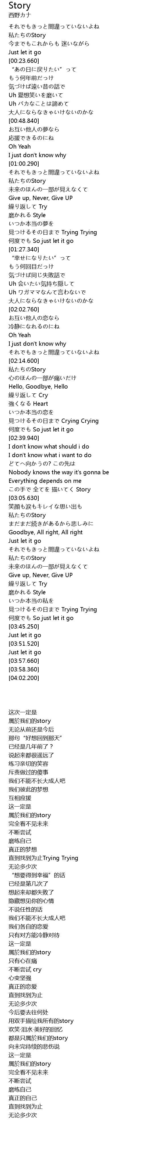 | [03:22.920] | 属於我们的story |