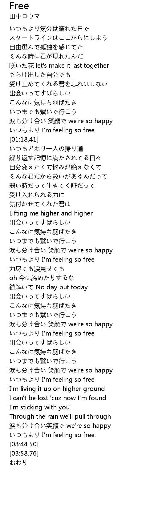| [03:33.10] | 涙も分け合い笑顔で we're so happy |