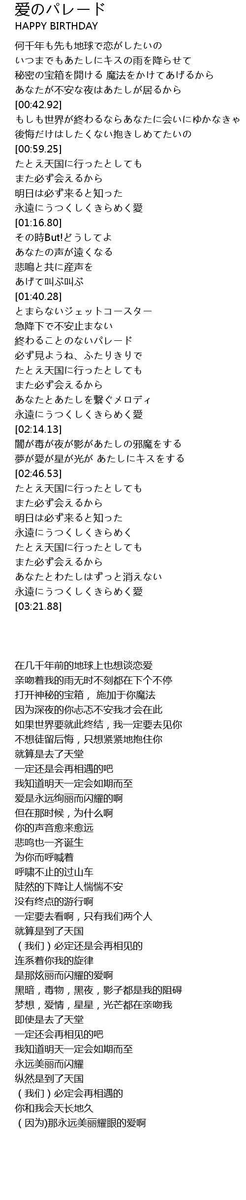 | [03:16.72] | 永遠にうつくしくきらめく愛 |