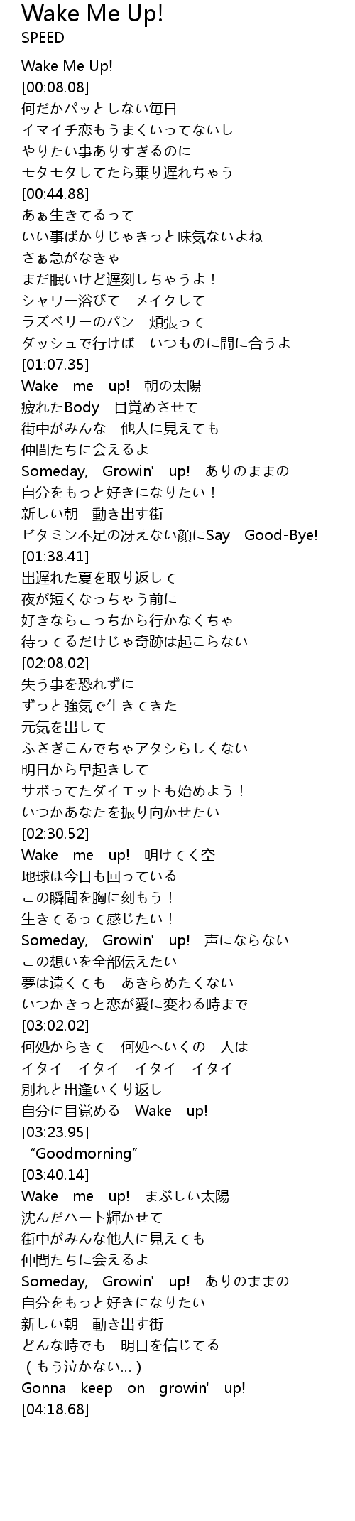 | [03:22.29] | zì fēn mù jué Wake up! |