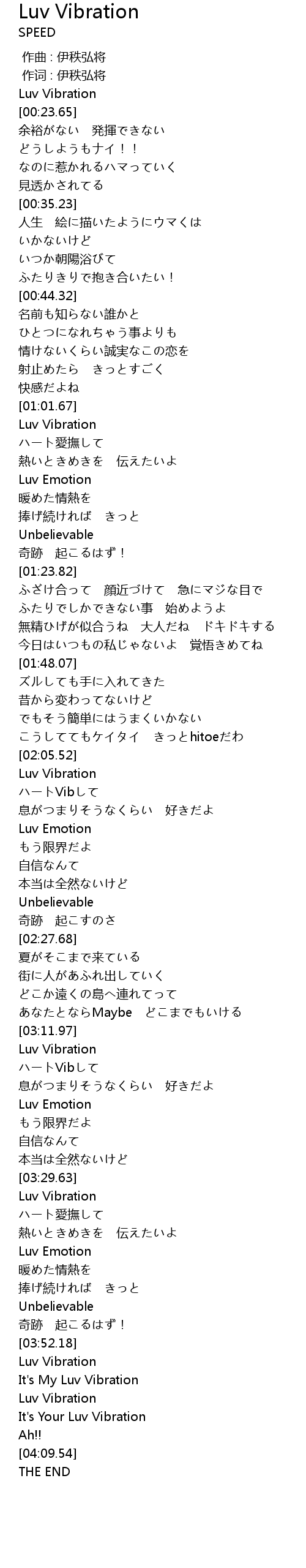 | [04:03.65] | Luv Vibration |