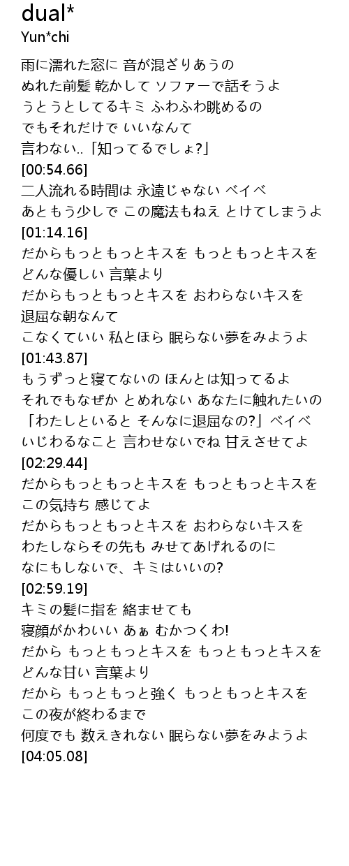 | [03:35.99] | だから もっともっとキスを もっともっとキスを |