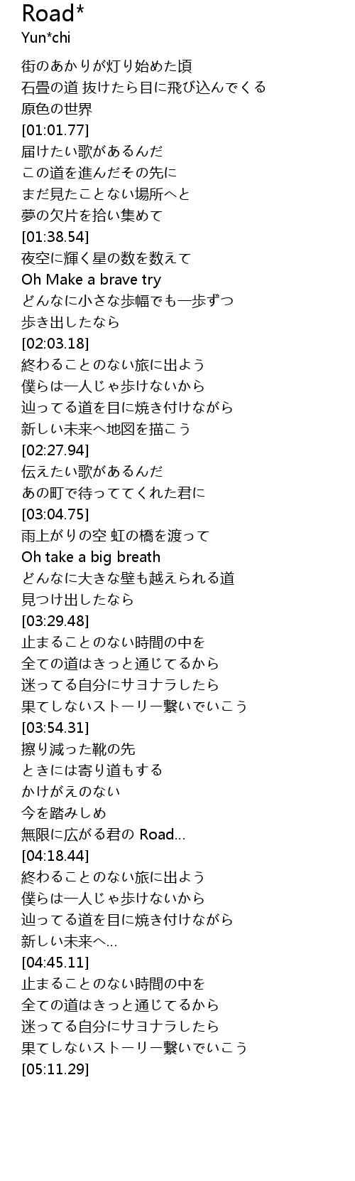 | [04:53.17] | 全ての道はきっと通じてるから |