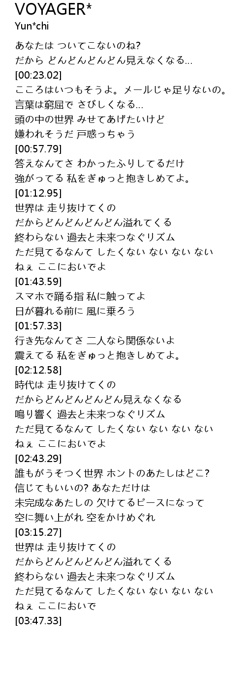 | [02:51.10] | 誰もがうそつく世界 ホントのあたしはどこ? |