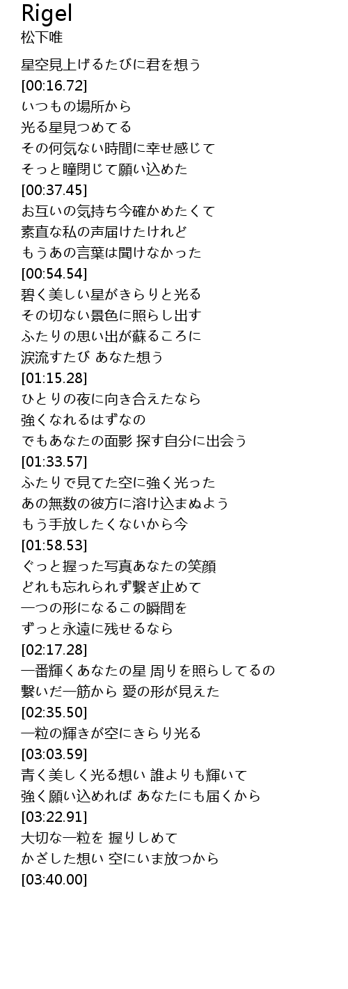 | [03:23.41] | 大切な一粒を 握りしめて |