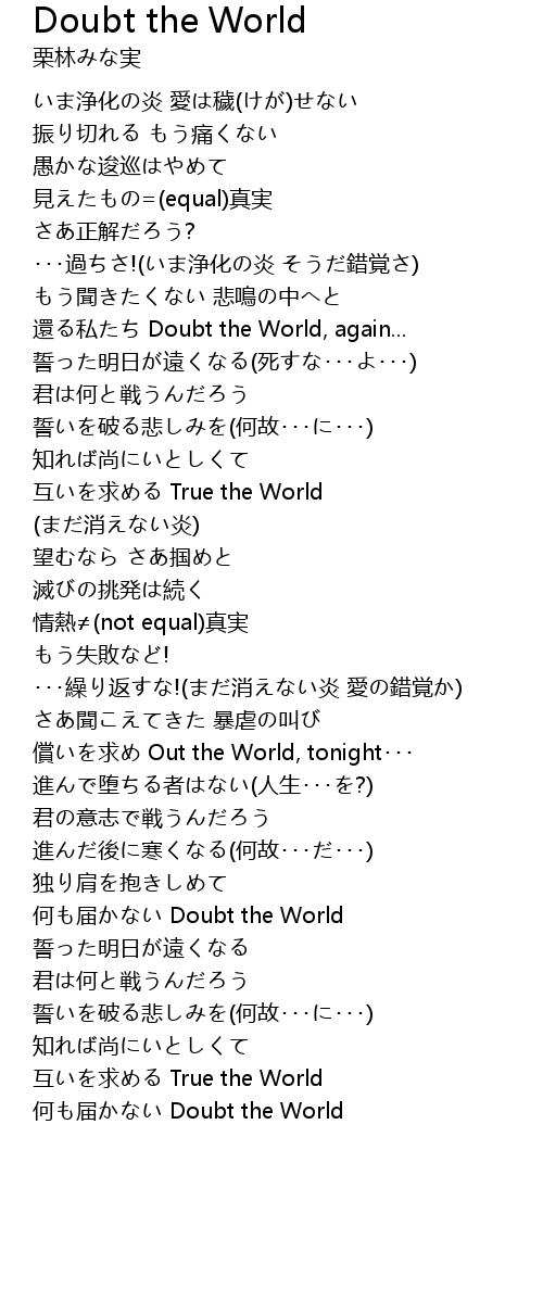 | ・・・過ちさ!(いま浄化の炎 そうだ錯覚さ) | |