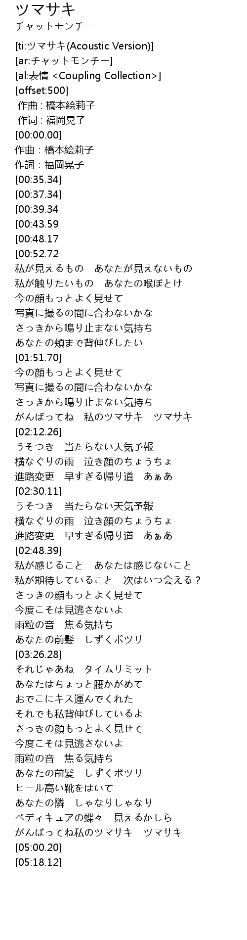 | [02:05.70] | がんばってね 私のツマサキ ツマサキ |