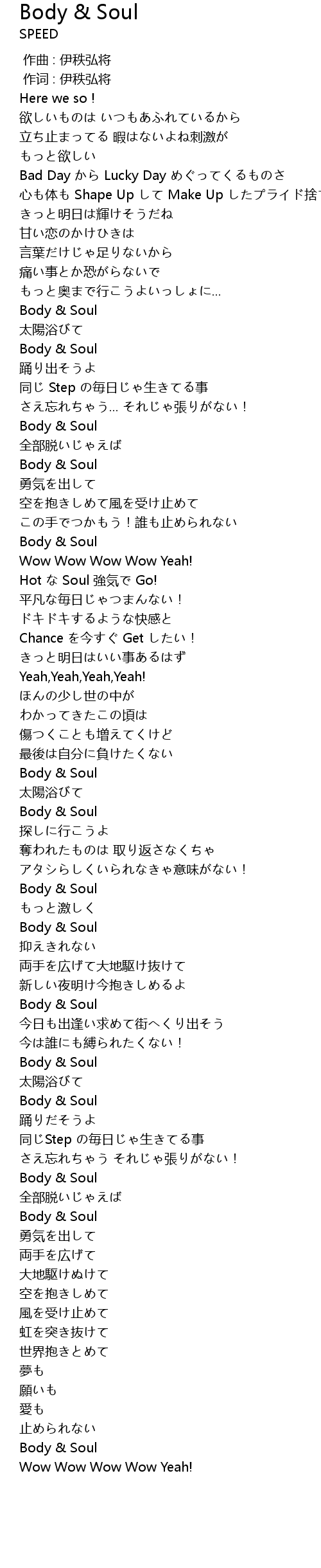 | [01:55.13] | Hot な Soul 強気で Go! |