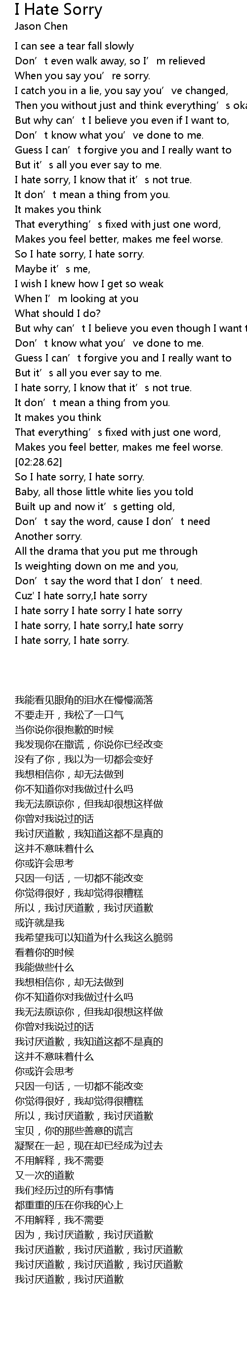 | [03:20.77] | I hate sorry, I hate sorry, I hate sorry |