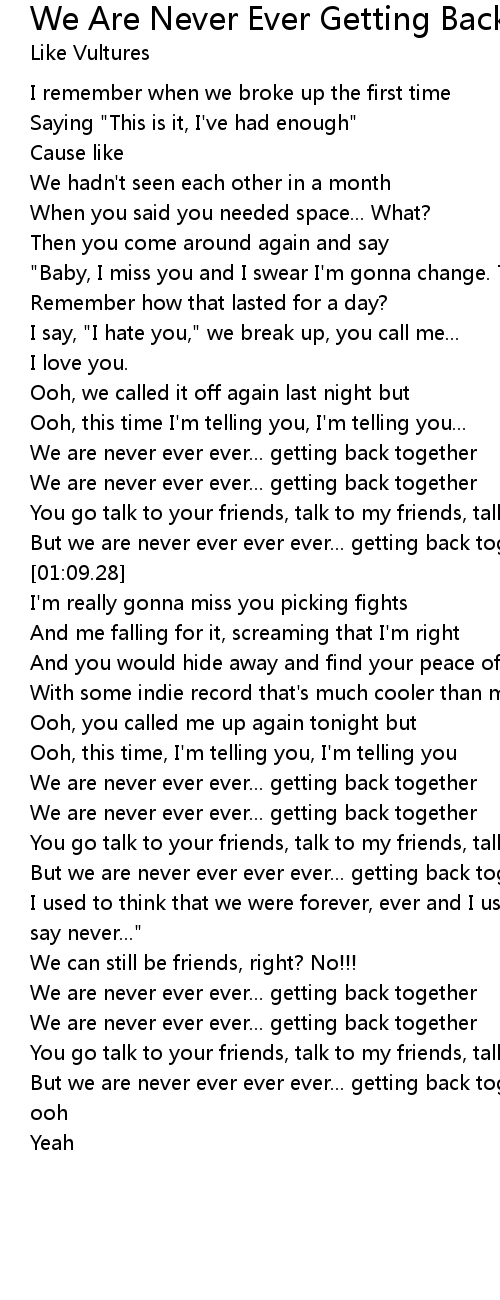 I used to think that we were forever, ever and I used to say "Never say never..." |