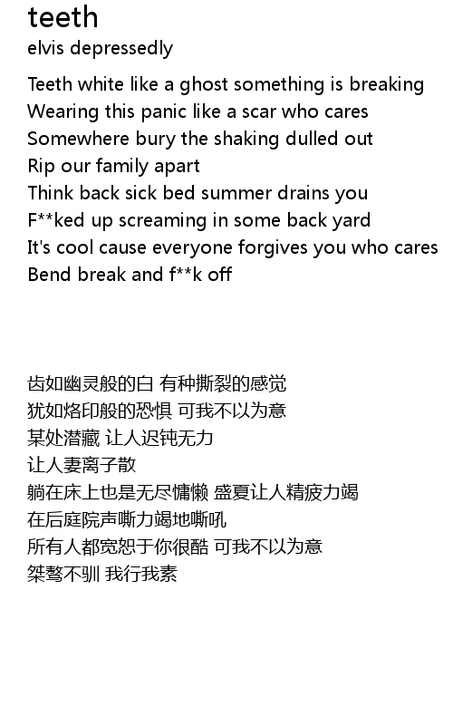 | [00:10.67] | Teeth white like a ghost something is breaking |