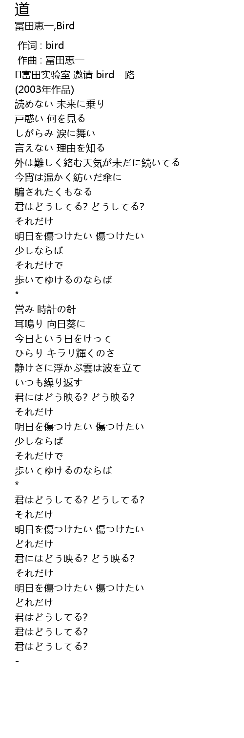| [00:00.200] | ♪富田实验室 邀请 bird - 路 |