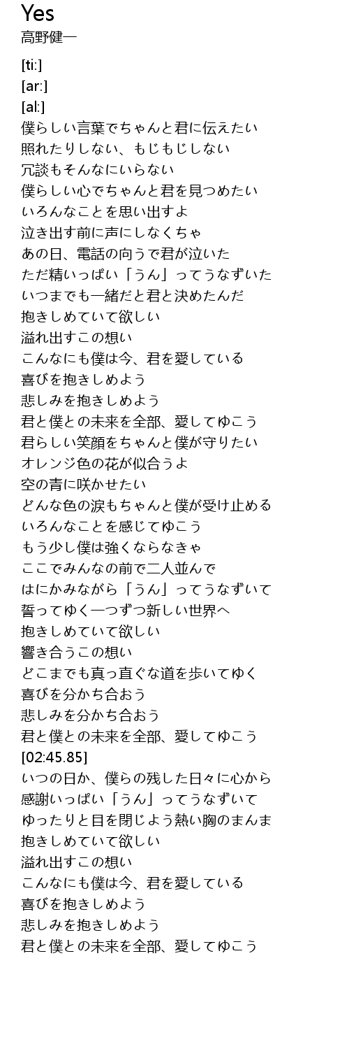 | [02:40.02] | 君と僕との未来を全部、愛してゆこう |