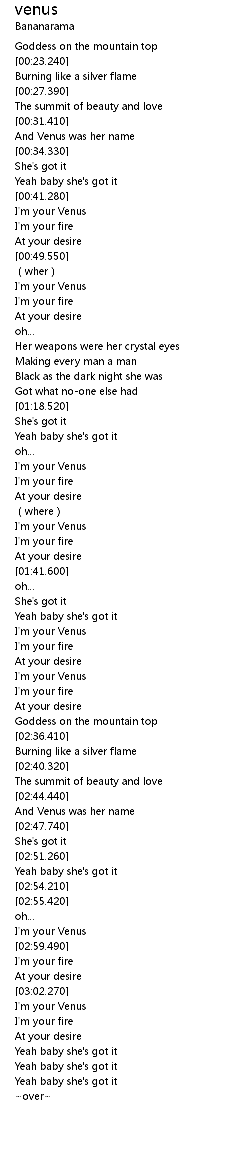 | [00:53.340] | I'm your Venus |