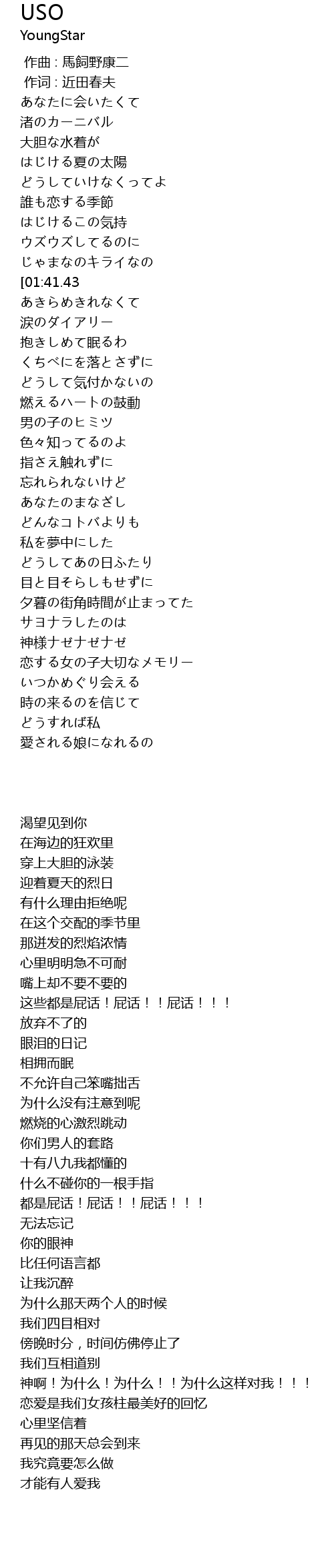 | [00:53.35][01:41.43] | そんなのウソウソウソ |
