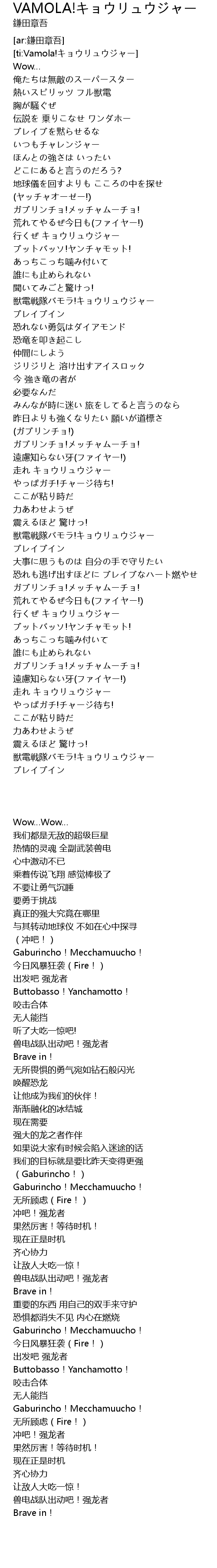 | [02:45.92] | 獣電戦隊バモラ!キョウリュウジャー |
