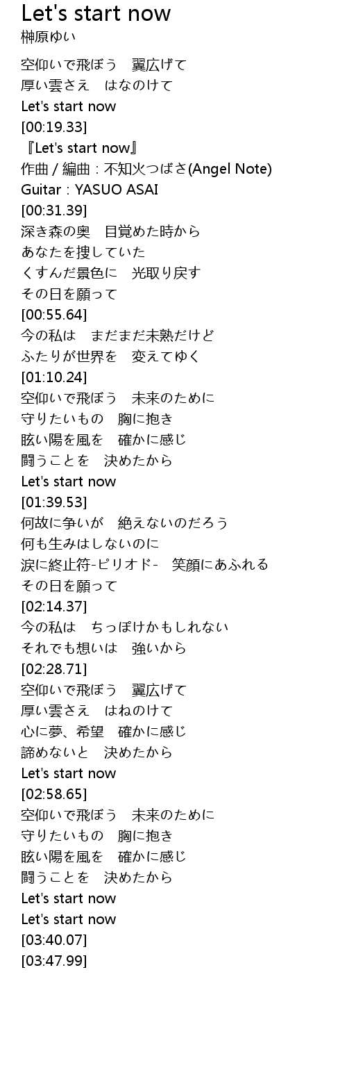 | [00:04.36] | 空仰いで飛ぼう 翼広げて |