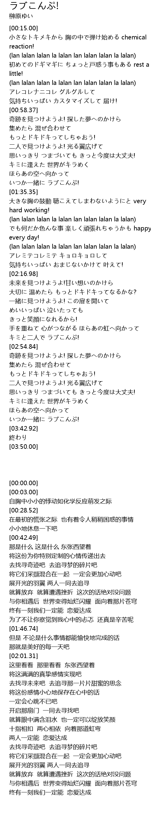 | [01:30.63] | いつか一緒に ラブこんぷ! |