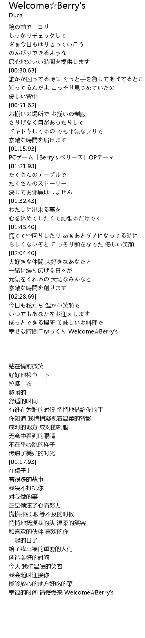 | [03:15.07] | 幸福的时间 请慢慢来 Welcome☆Berry's |