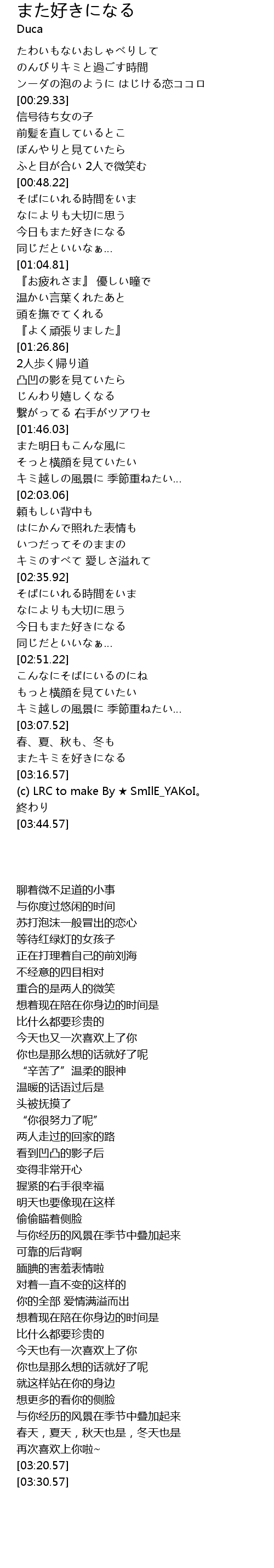 | [03:12.10] | 再次喜欢上你啦~ |