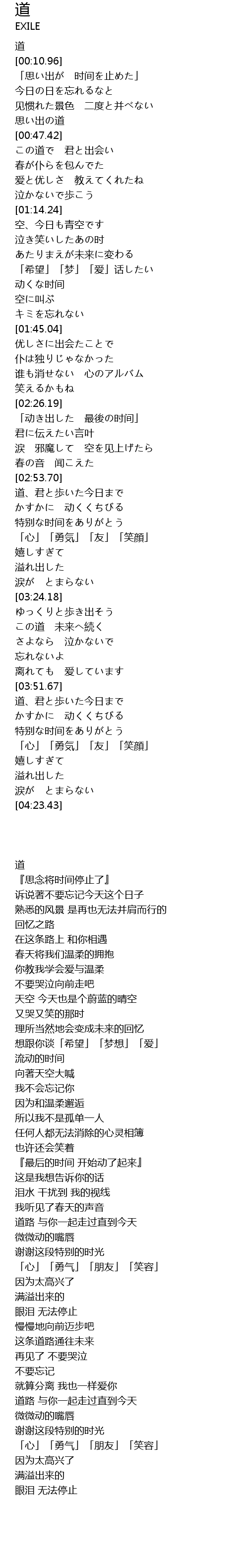 | [03:53.18] | 道、君と歩いた今日まで |