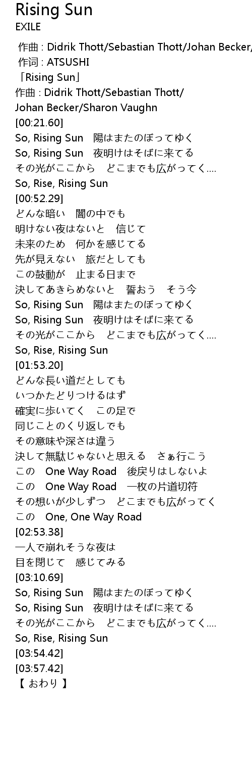 | [00:01.60] | 「Rising Sun」 |