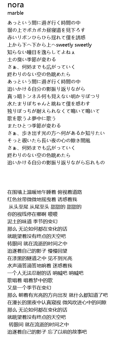 | [03:34.161] | 追いかける自分の影振り返りながら忘れもの |