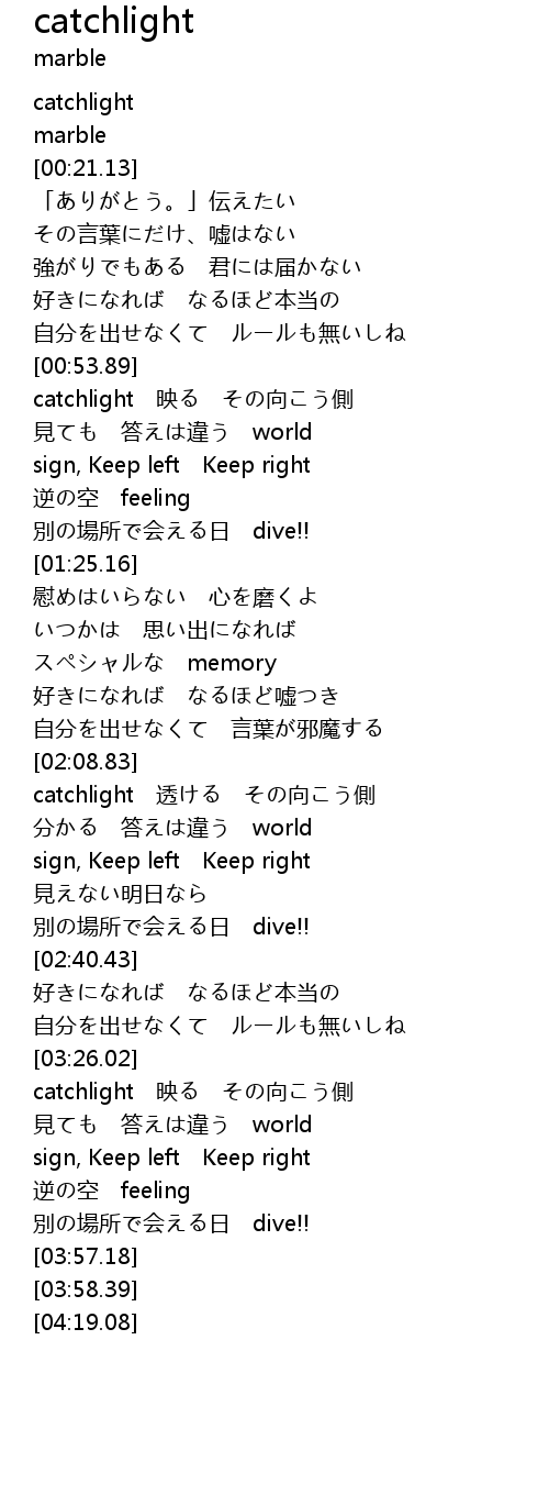 | [03:26.92] | catchlight 映る その向こう側 |