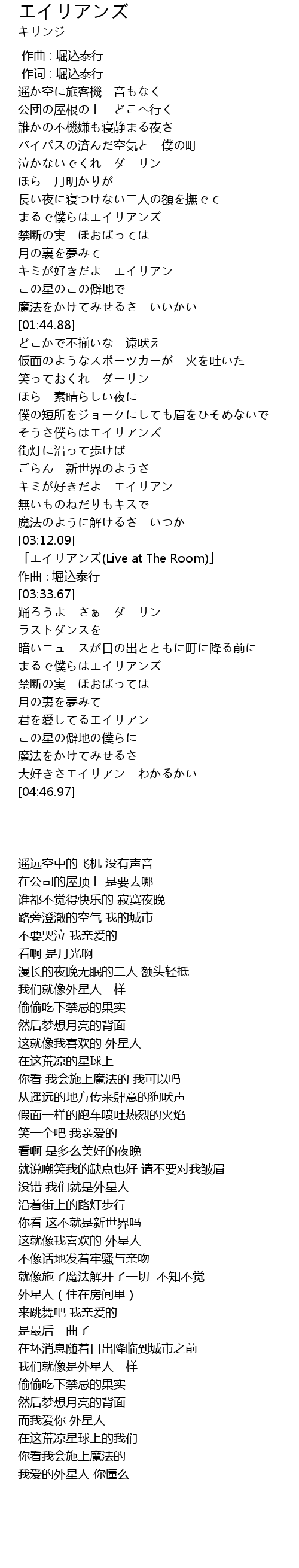 | [04:37.43] | 大好きさエイリアン わかるかい |