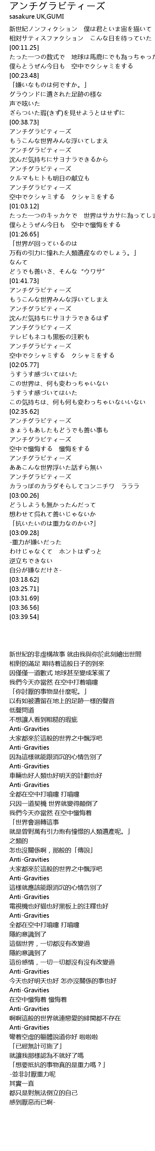 | [00:38.91] | アンチグラビティーズ |