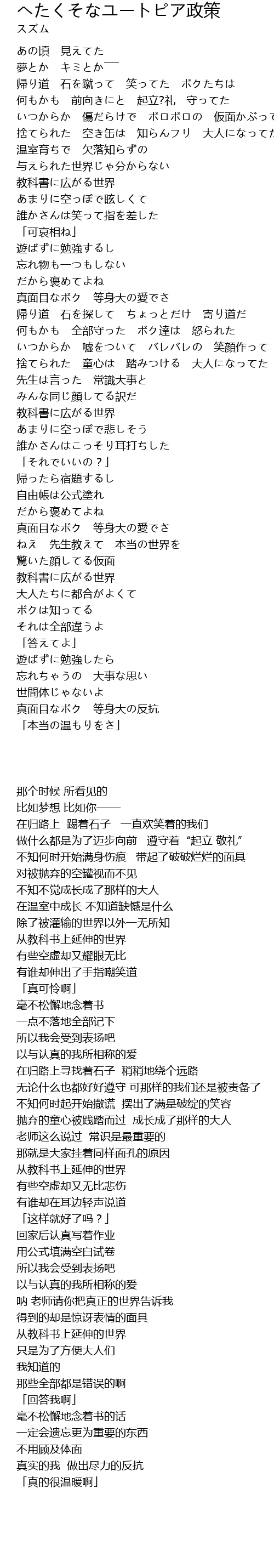 | [03:38.89] | 真面目なボク 等身大の反抗 |