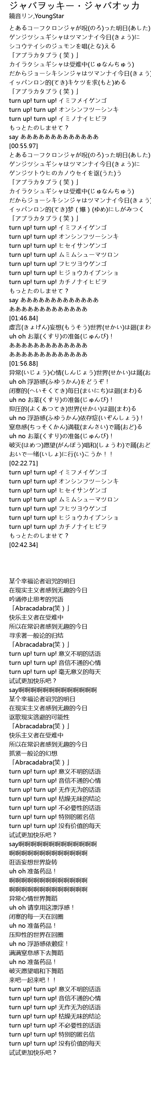| [02:22.73] | turn up! turn up! イミフメイゲンゴ |