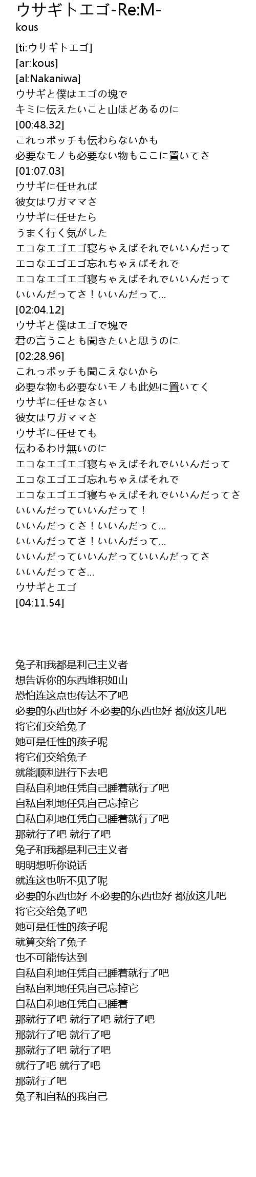 | [02:19.03] | ウサギと僕はエゴで塊で |