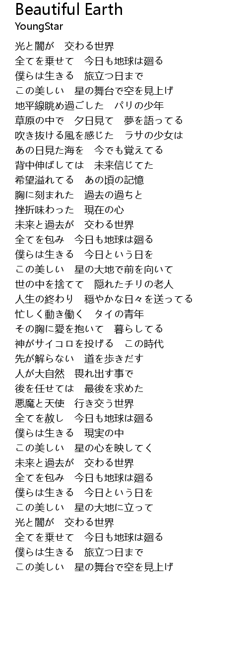 | [02:00.48] | この美しい 星の大地で前を向いて |